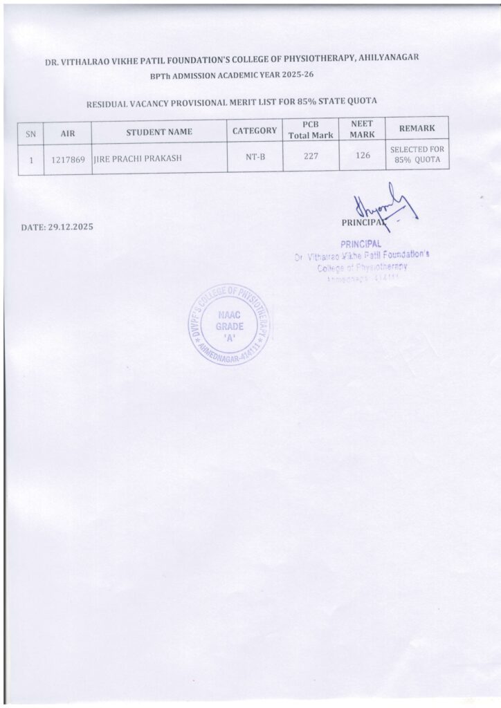 Application Received List MPT course for Vacancy round Application Received List MPT course for Vacancy round Read More »