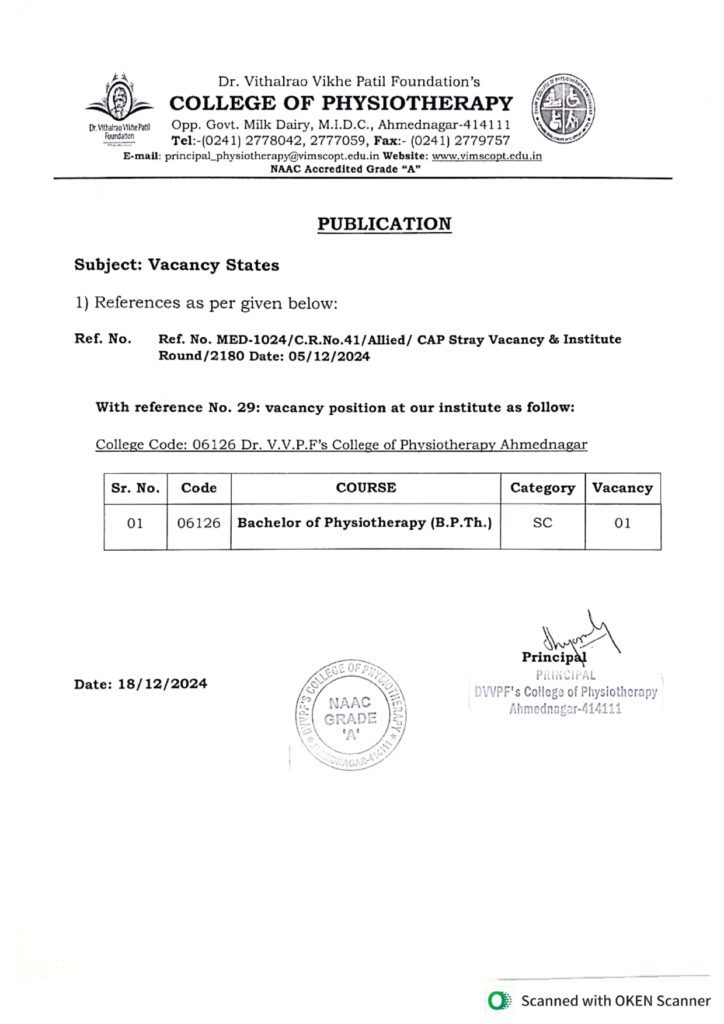 Recognized by Maharashtra State O.T.P.T. Council, Mumbai
