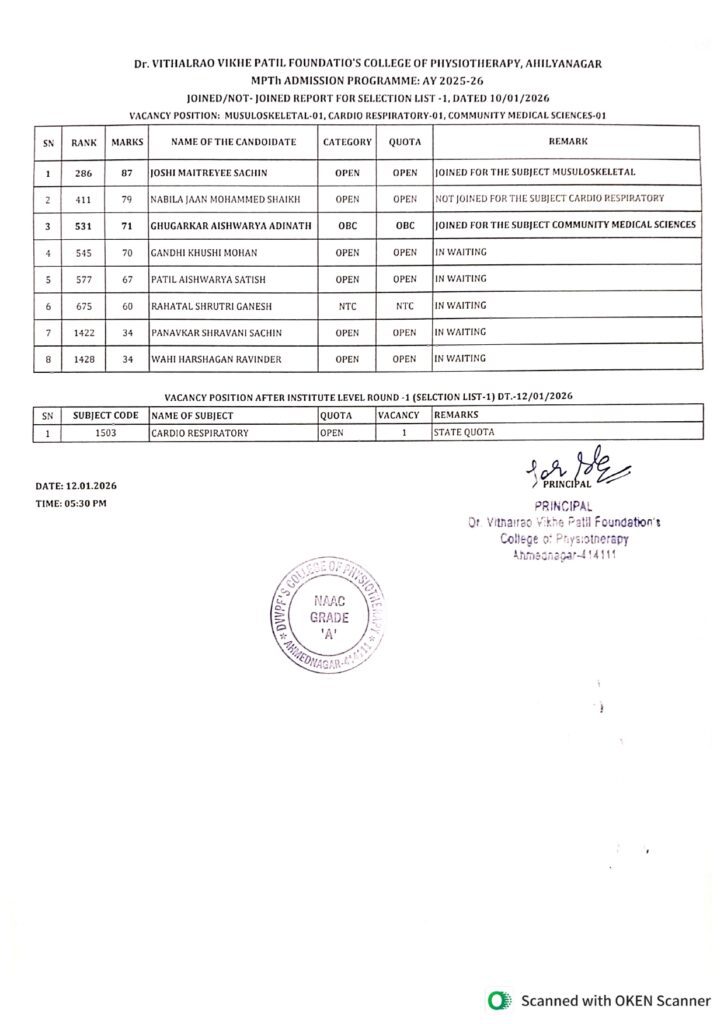 Recognized by Maharashtra State O.T.P.T. Council, Mumbai